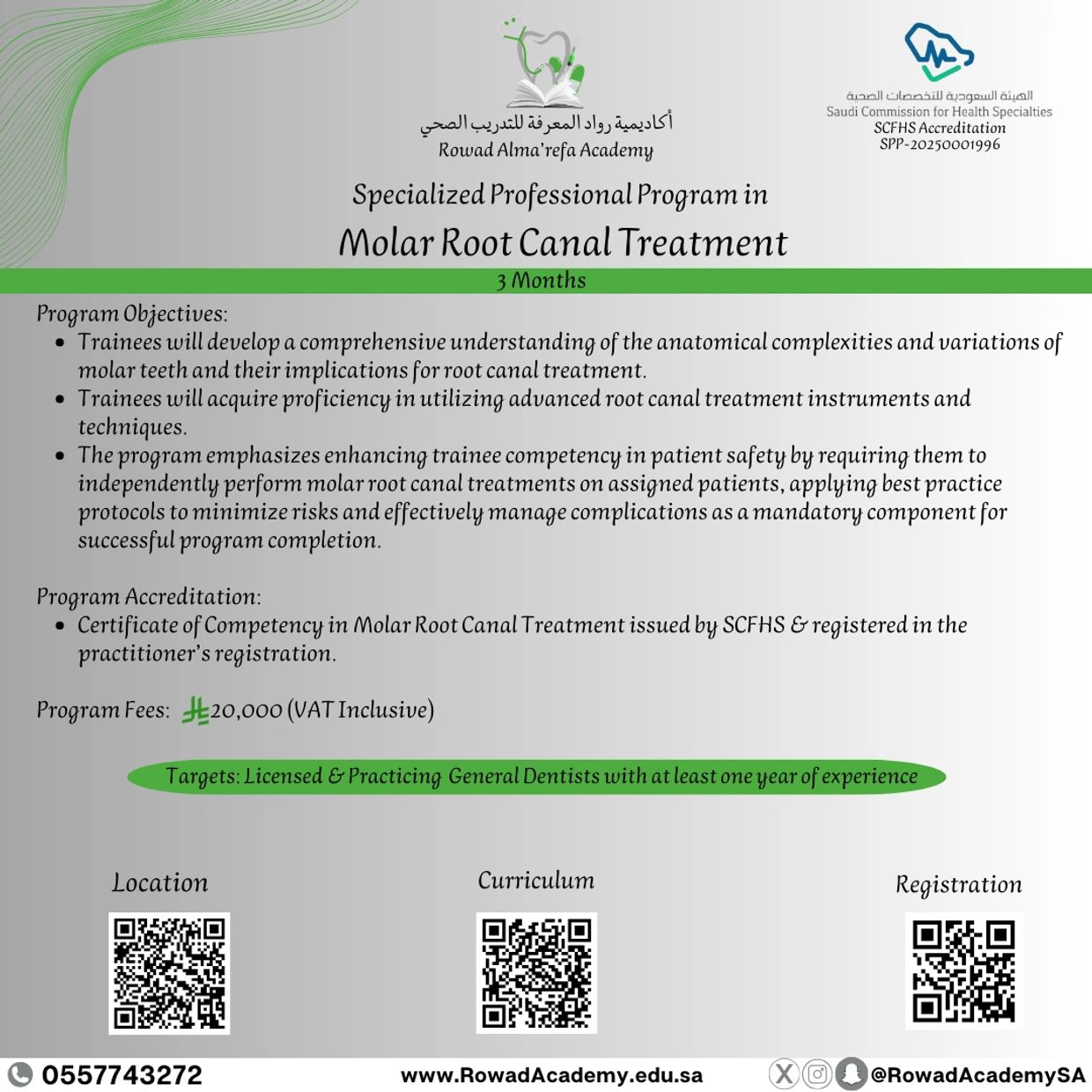 هل أنت طبيب أسنان عام تطمح لتطوير مهاراتك بشكل احترافي، وتمارس علاج عصب وجذور أضراس الأسنان بكفاءة عالية ووفق إطار نظامي وقانوني؟